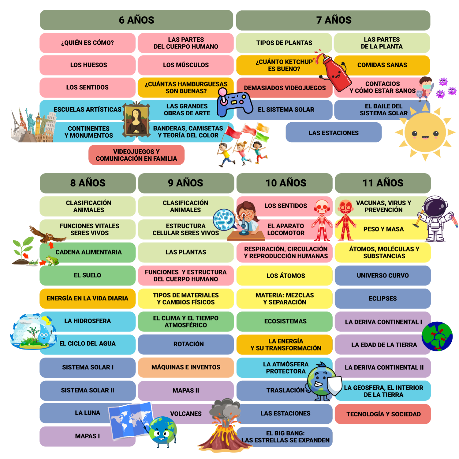 Contenidos para cada etapa educativa